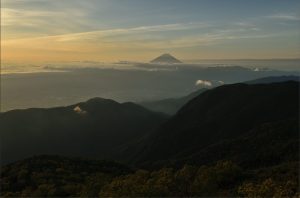 もう少しゆっくりしたかったが、登ってくる人が上に来ないうちにおりようと5:30あたりで最後に山頂付近を撮って撮影を終えた。